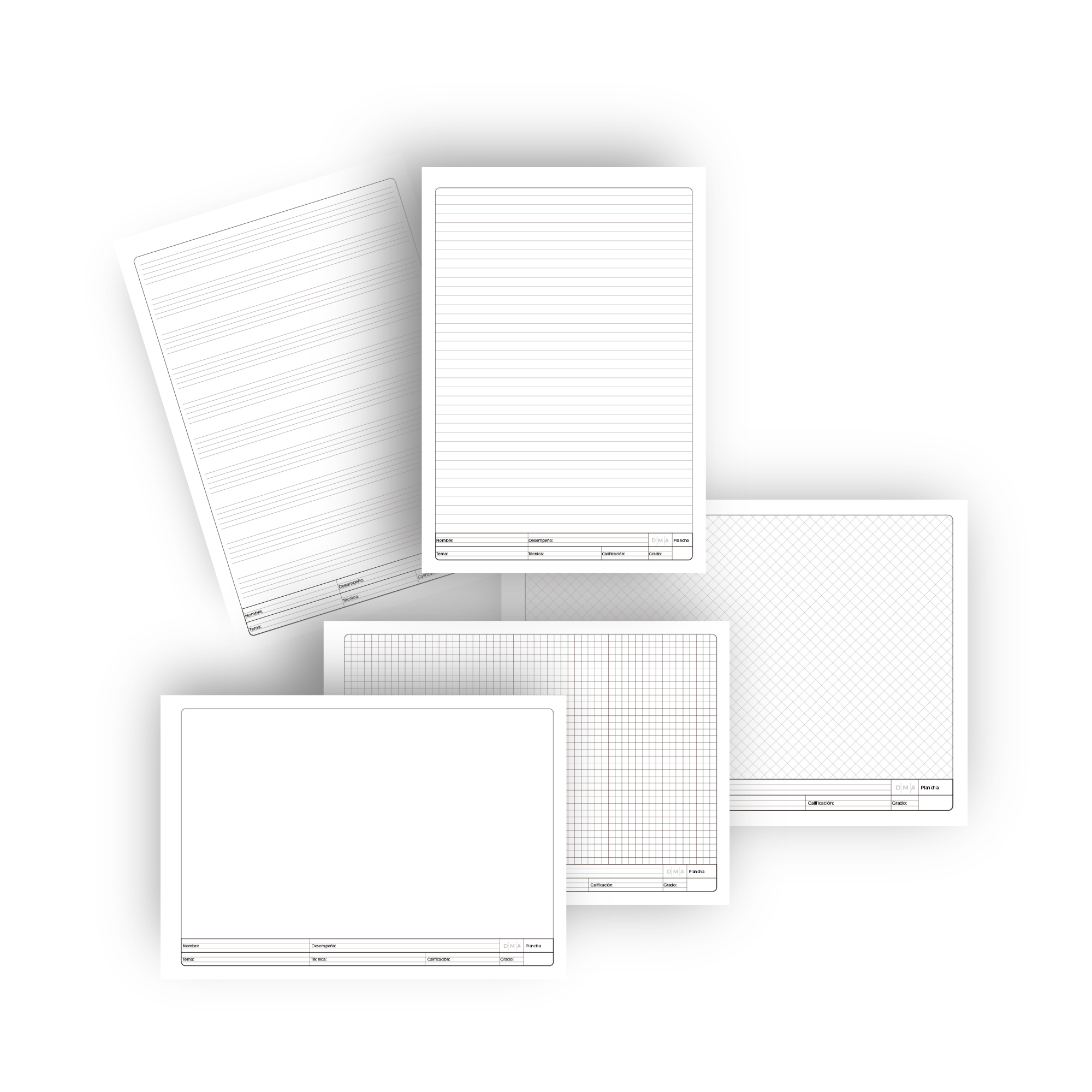- Hojas en papel bond 115 grs: 100 hojas suficientemente gruesas para que trabajen con mayor facilidad.